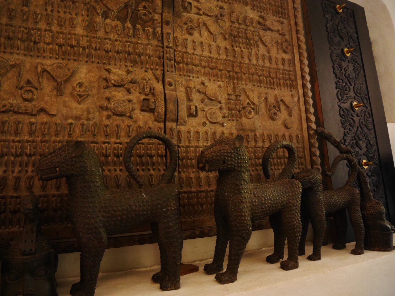 Monogrammed leather suitcases were stacked up on a stairwell and huge carved doors from Zanzibar were propped against a wall.