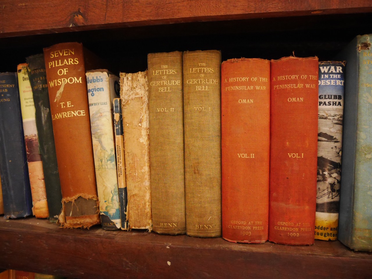 The library had hundreds of books, many of them first editions by people such as TE Lawrence and Gertrude Bell. On a table was a blunderbuss used to defend Jalalabad in the 19th century.