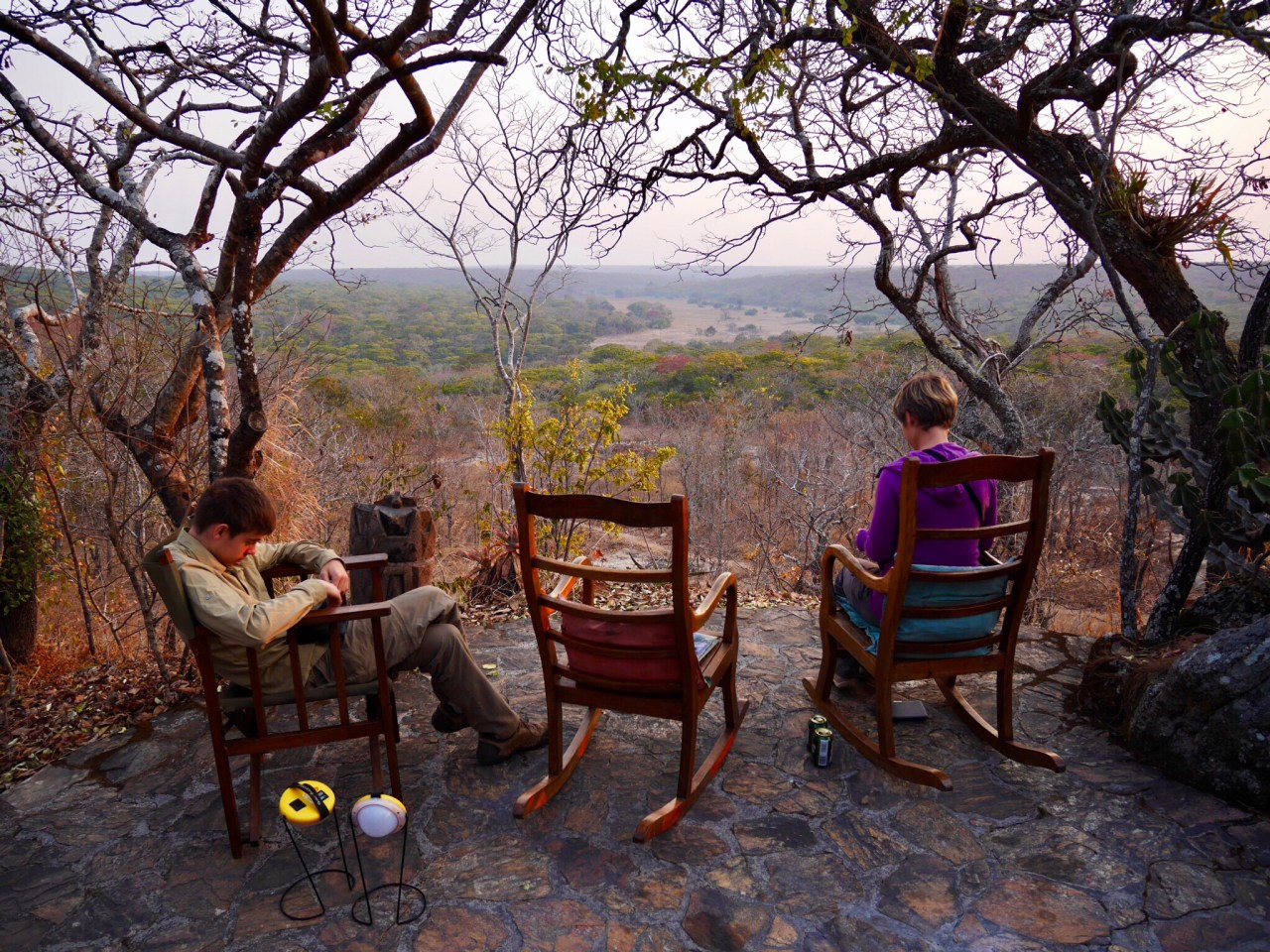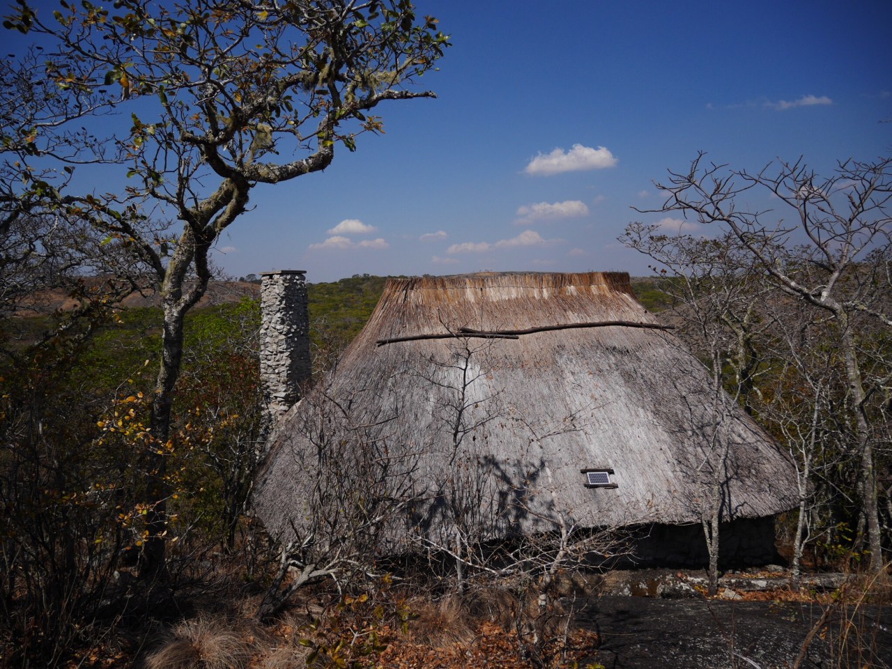 We got there without drama and settled into our very simple thatched chalet backing into a rock face with a balcony overlooking a sweep of hillside and forest. It’s remote and peaceful and much cooler here than on the other side of the escarpment in the Luangwas.