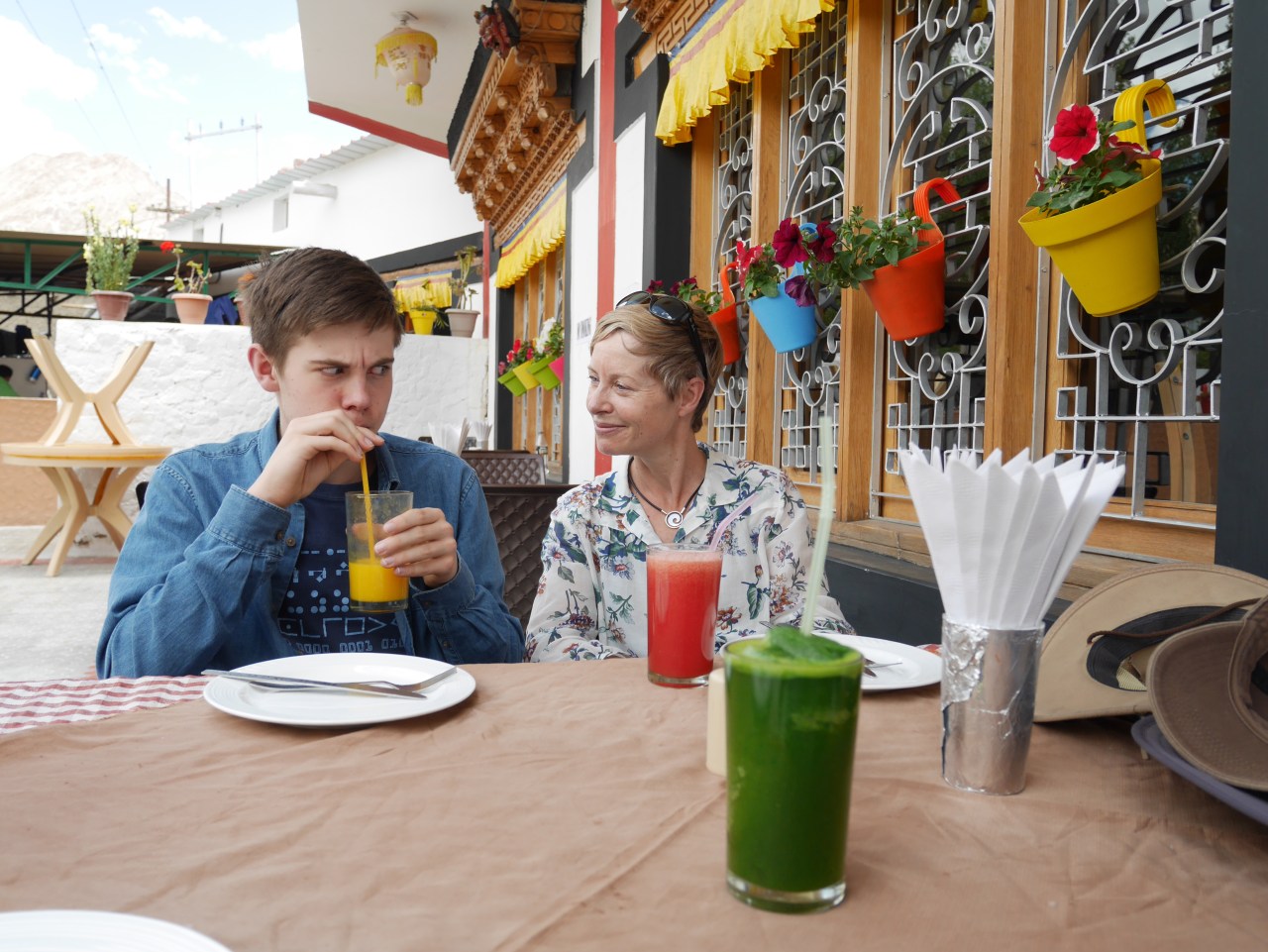 It has everything of course. Coffee bars with WiFi, warrens of pashmina and antique shops. One says over the door “more junk upstairs”. And so to lunch at a Tibetan restaurant with a great range of fresh juices, zealously guarded by some of us.
