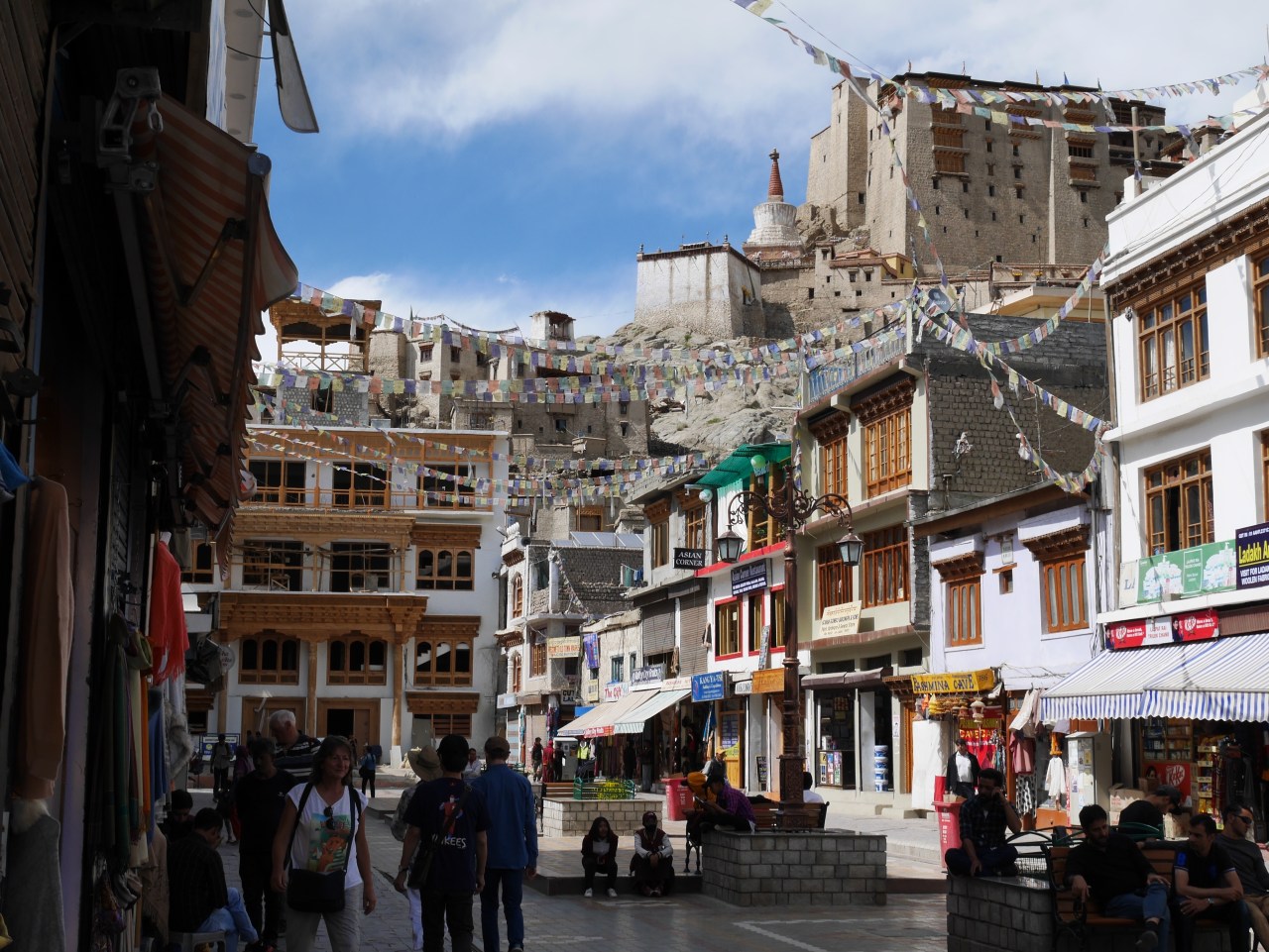 After an hour we reached Leh and threaded our way up and up through narrow streets lined with cavelike shops selling everything; jostling with people and motorbikes and cabs. Eventually we got to our guesthouse where the manager seemed somewhat nonplussed by our arrival and flicked intently at his mobile phone for answers. Later it turns out that he has given away our room (or his sister has. It’s complicated). We left him with our bags and headed through an alleyway running between houses and shrines back down to the heart of the town.