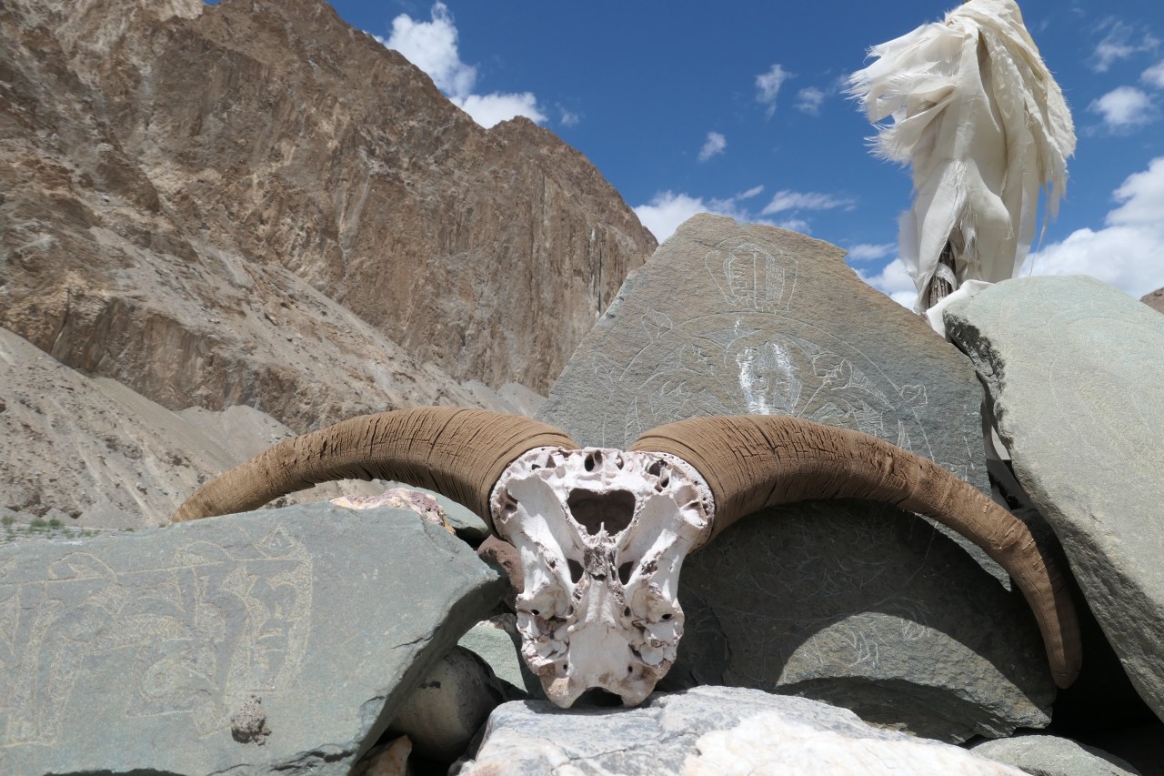 Every day the monk there walks down the perilously steep track, crosses the river and walks on to Markha to carry out various rituals for the villagers, before walking all the way back. We’d seen him coming our way at the river crossing, which meant, said Sonam, we couldn’t get into the monastery to have a look even if we did climb up there. I think we were all grateful for the excuse to avoid scaling the cliff.