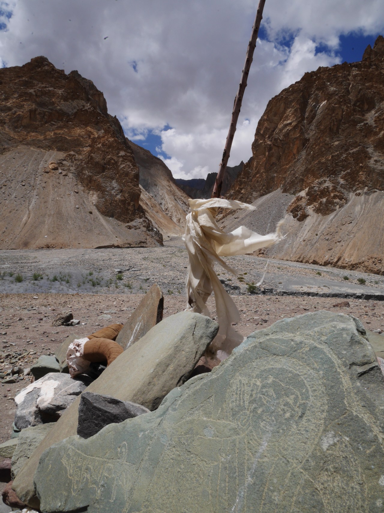 There were fish in the river just beyond the tent, no more than about six inches long. Sonam said the Buddhists believed they were sacred and never caught them. We didn’t catch them either. For much of this section of the trek we came across sacred sites, and Sonam was always careful to walk past them clockwise.