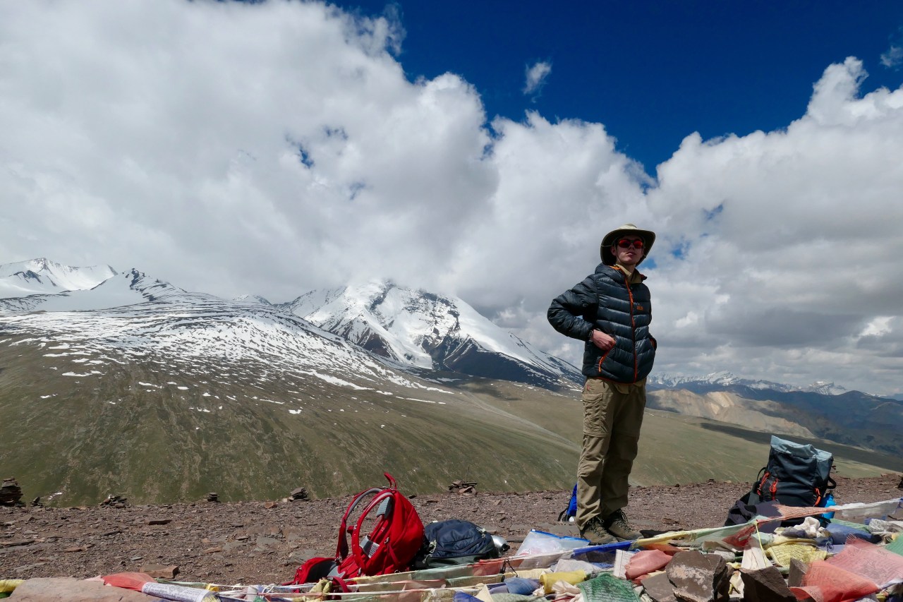 Soon there are flapping prayer flags marking the top and we come to the crest of the pass.