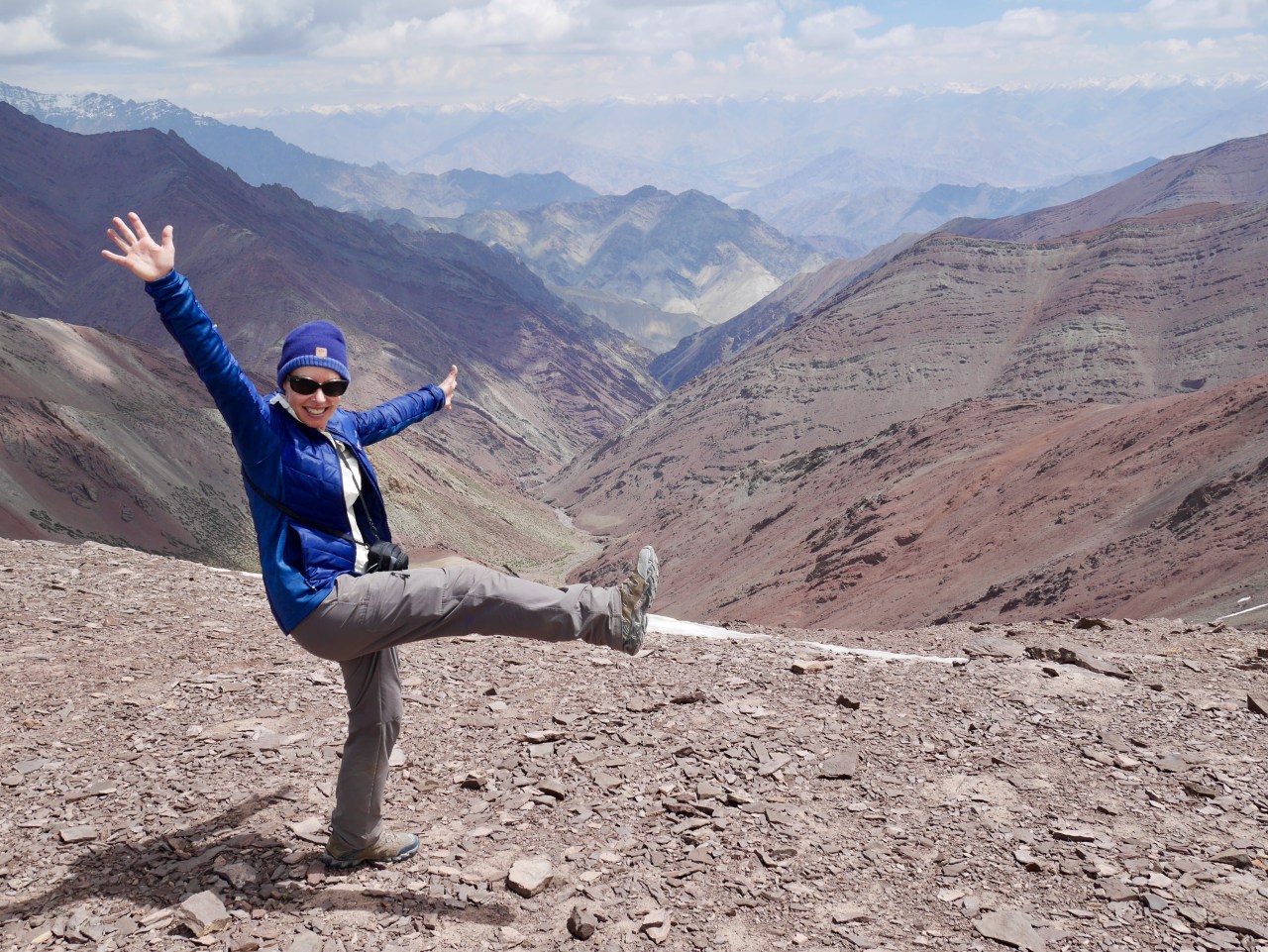 We can see all the way across to the snow-capped Karakoram mountains standing in a menacing line across the horizon. It’s a magical moment and what’s more the sun comes out, lighting up all the peaks around us. We shrug off our packs and sit and take it all in.