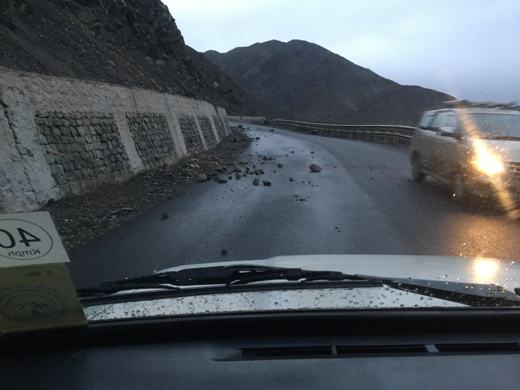 Driving through the mountains as dawn broke was a slalom course through large rocks loosened by the downpour.