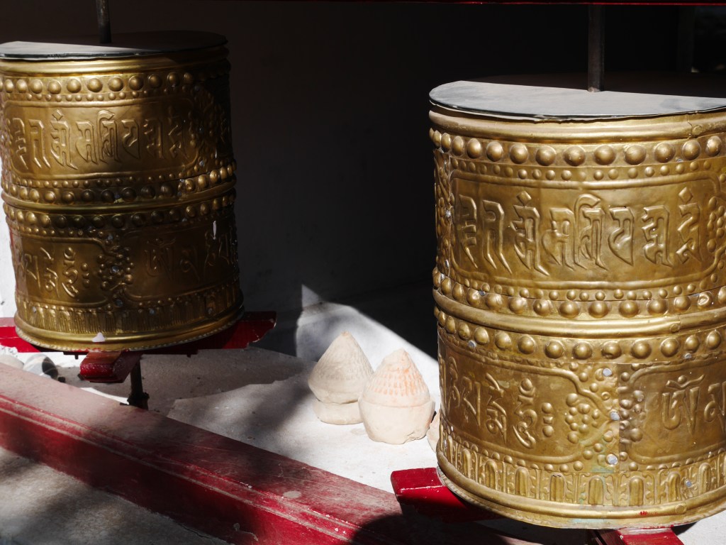 By the morning of our departure it had been raining heavily for about twenty four hours. We passed the the prayer wheels at the entrance to the Nimmu House grounds for the last time