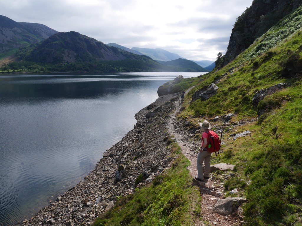 We left Ennerdale on a narrow road with no traffic. Either side of us were woods and fields. A red squirrel hopped into the road and darted back to safety. He was a wispy little thing, no match for the Greys which have gradually driven them out almost everywhere in the UK. When we reached Ennerdale Water (a small lake which provides water for surrounding villages) it felt like this walk had really begun. On the far side, a tractor rumbled in the fields but at the head of the lake, mountains loomed either side of the valley, beckoning us in. It was an easy walk in sunshine, the air completely still.