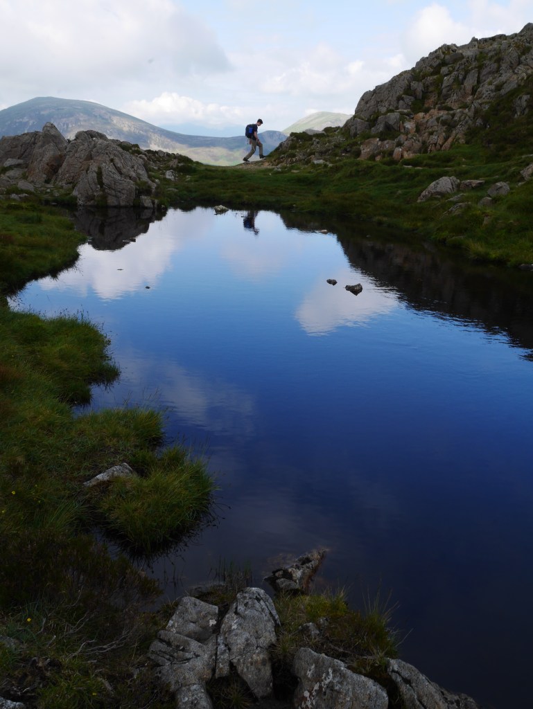 Easy and safe though it was it made it feel more of an accomplishment and at the top an inky black tarn sat in the rocks like a scale model of the lake we’d walked around at the start of the day.