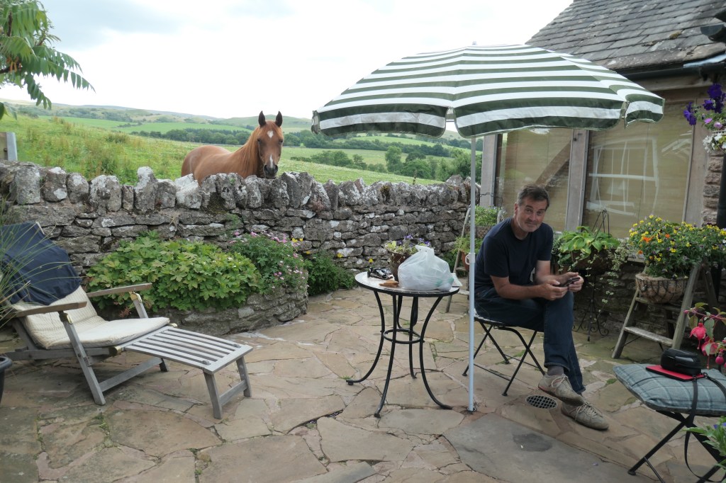 Having achieved the staggering feat of walking for three whole days in a row, Kirkby Stephen offered a welcome rest day and we didn’t do a whole lot. The three of us sat in the back yard of the B&B for a bit; reading, writing and blogging as clouds moved across the sun. We were watched all the while by a nosy horse.