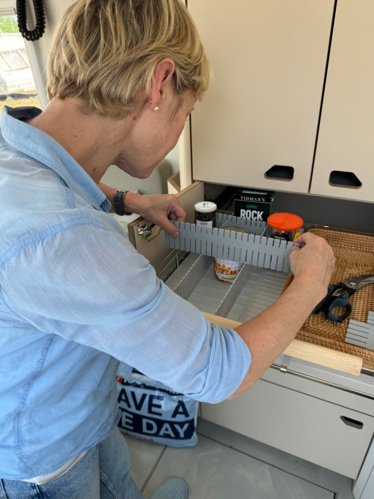 While we worked through that process we also did some some fitting out – installing grocery shelves, filling the storage hatches with chairs and tools and other bits and pieces to make Arnie properly ours.