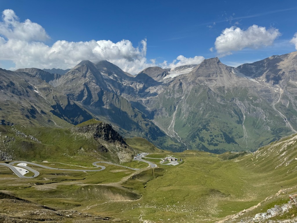 We stopped at a pull-off for a while and watched falcons and buzzards wheeling and whistling above us. For all the visitors Großglockner still has the sense of being a wild place, dwarfing the ant-like humans swarming over it.