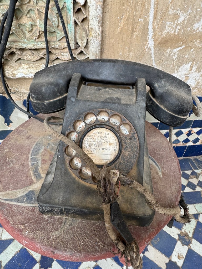 Inside the portico in a gloomy corner, an old man lay in bed watching television in a haze of cigarette smoke. We asked in French if we could come in and he beckoned us over. “Vingt-cinq Dirham” he said, holding his hand out, his eyes briefly leaving the screen. We handed over the money and he waved us further into the gloom emerging in an extraordinary time capsule.