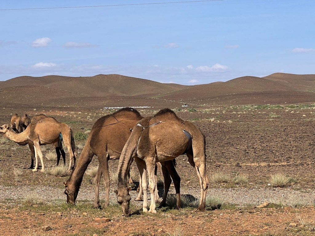 There was an occasional slim river and aquifers which you can spot from the curious mounds created by the access holes people have dug. Every so often we passed stands of date palms, planted in rows. In Taghzoute we saw camels for the first time in Morocco, grazing by the road.